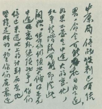 ↑劉少奇于1946年1月9日致電中共中原局手跡。 |