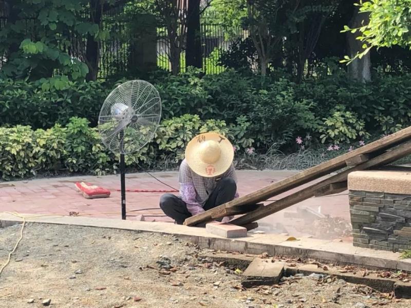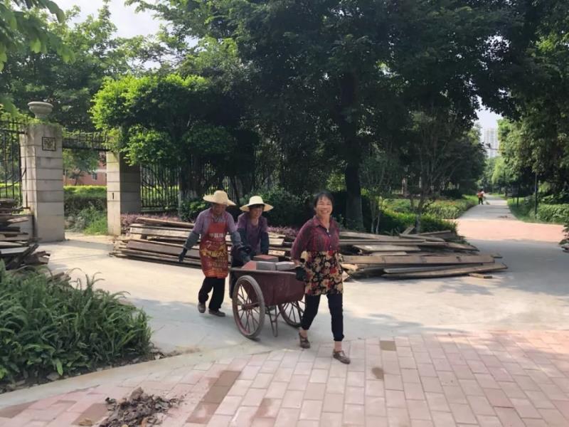 為確保小游園建設(shè),園林人不畏酷暑堅(jiān)持在一線工作