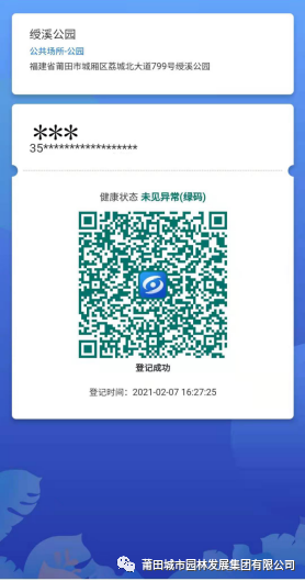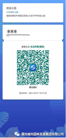 4.顯示“登記成功”。 三、入園后,請游客自覺做好防范措施,不聚集、不扎堆、有序游玩、保持1米以上安全距離。 四、若有異常情況,請配合工作人員轉移,并登記個人信息,按規(guī)定流程處置。 五、游客接待量超過公園最大承載量的75%時,公園將實行限流管控,請自覺排隊等候。 六、若您有困難,請持智能手機前往公園入口處,工作人員、志愿者將給予幫助,方便順利入園。 七、園區(qū)游客較多,公園綠道自行車限行,造成不便,敬請諒解。