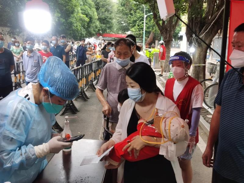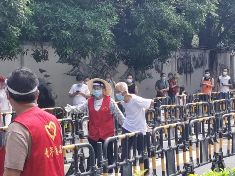 核酸檢測期間,志愿者耐心督促市民遵守“一米線”原則,查看健康碼、檢測體溫、錄入信息......園林志愿者們動作迅速、合作默契。