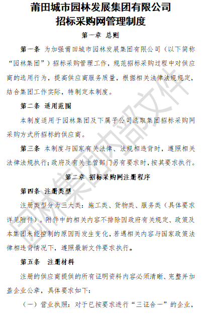 莆田城市園林發(fā)展集團有限公司關(guān)于印發(fā)招標采購網(wǎng)管理制度的通知